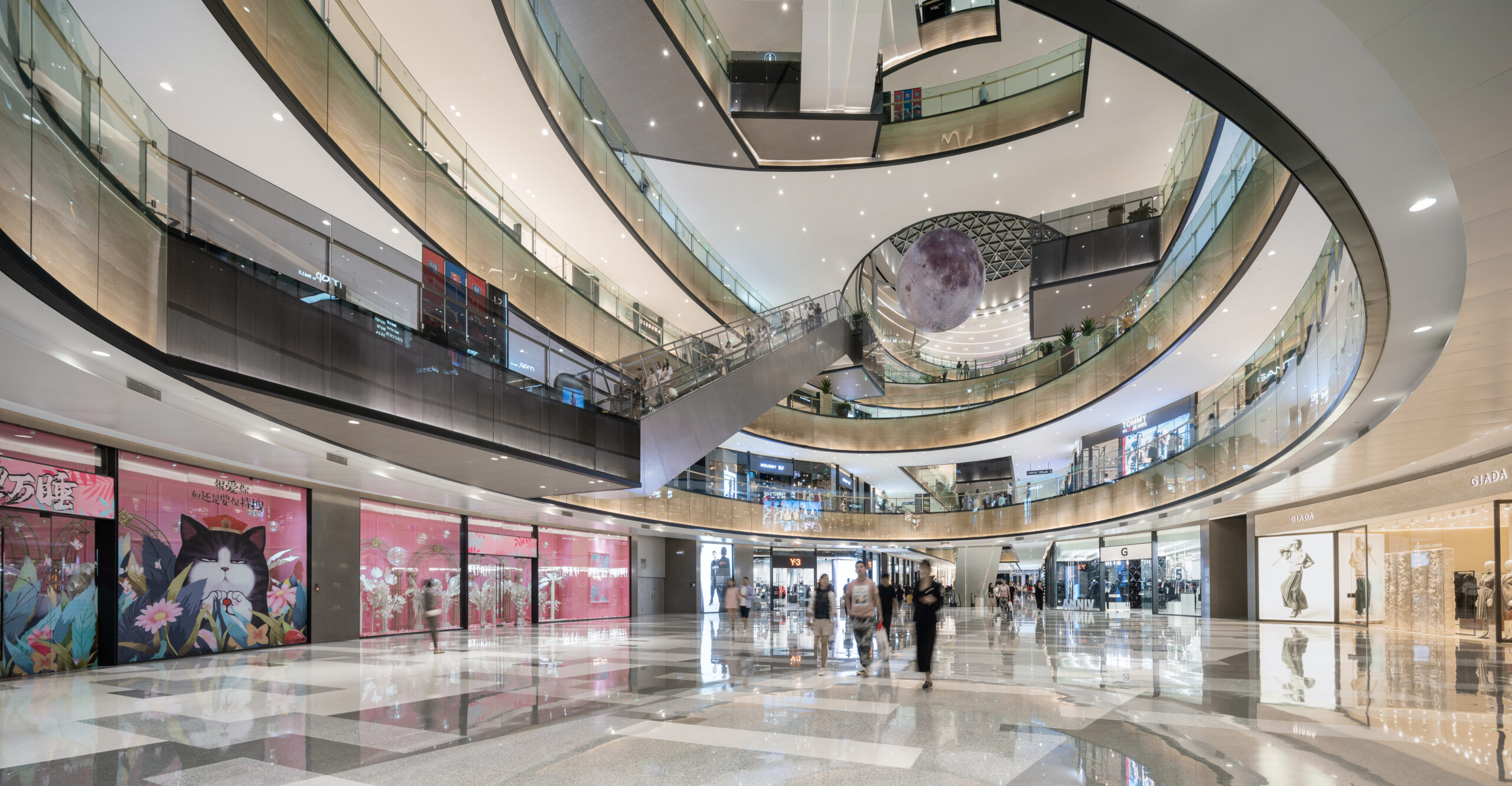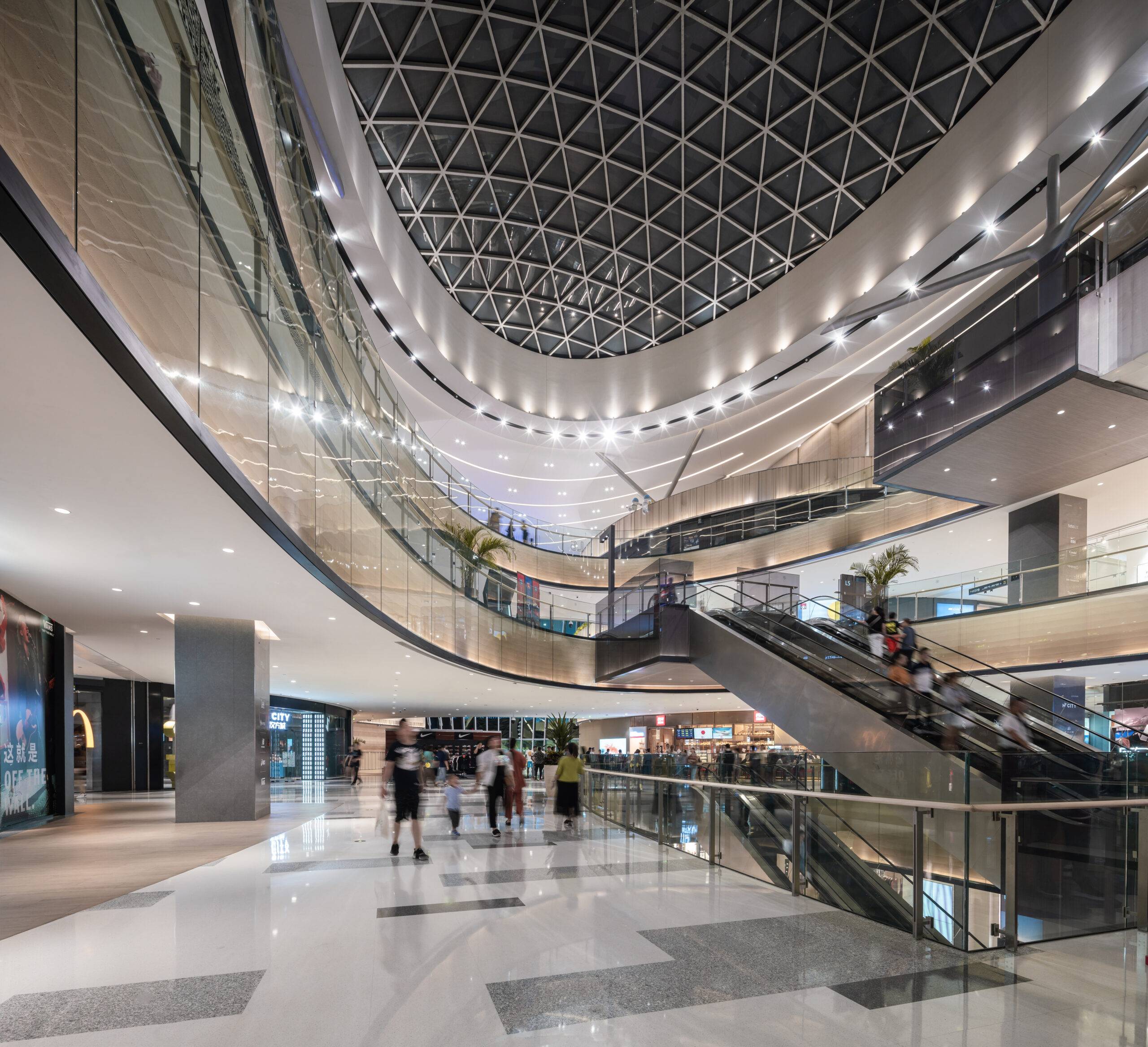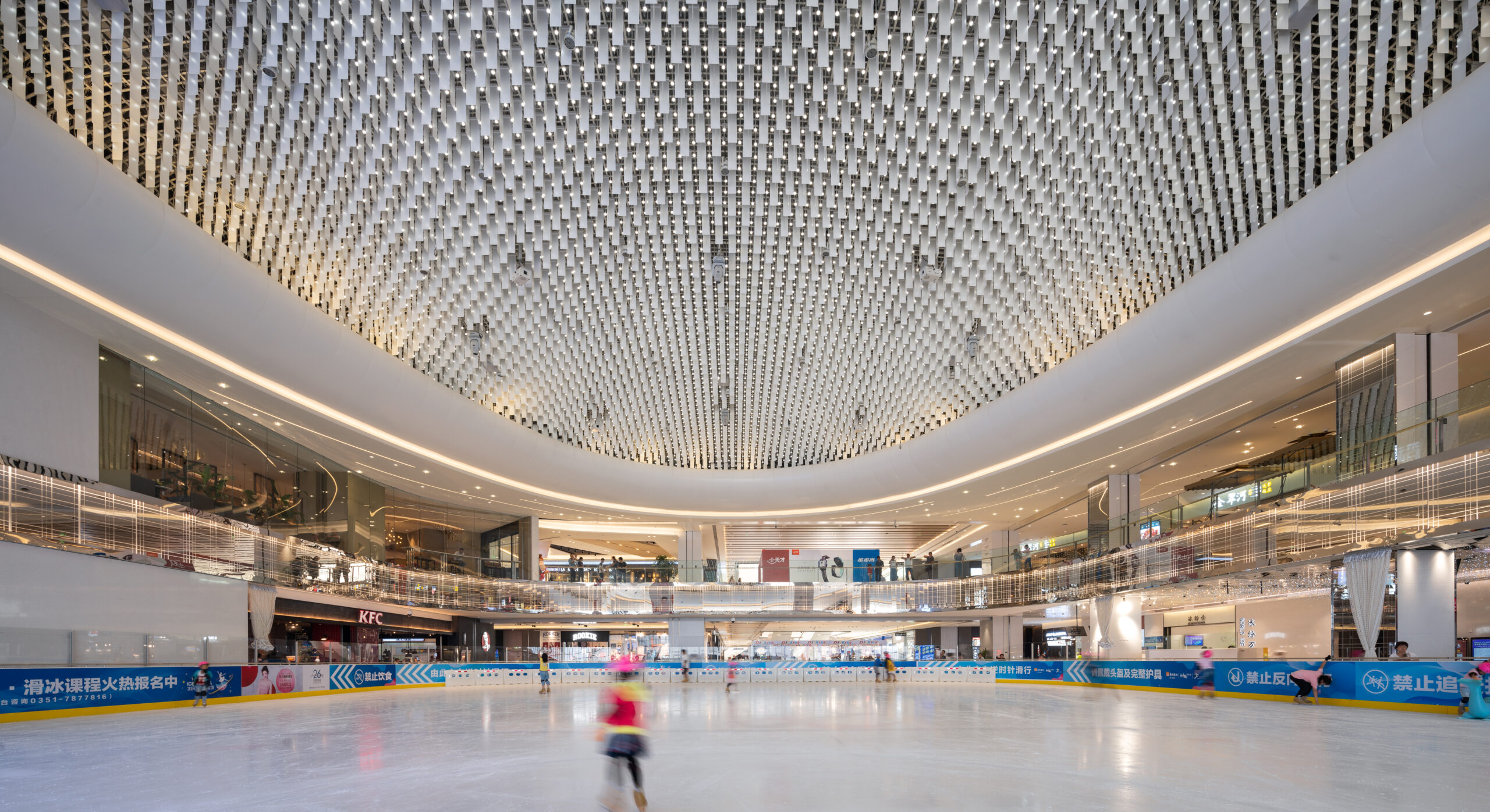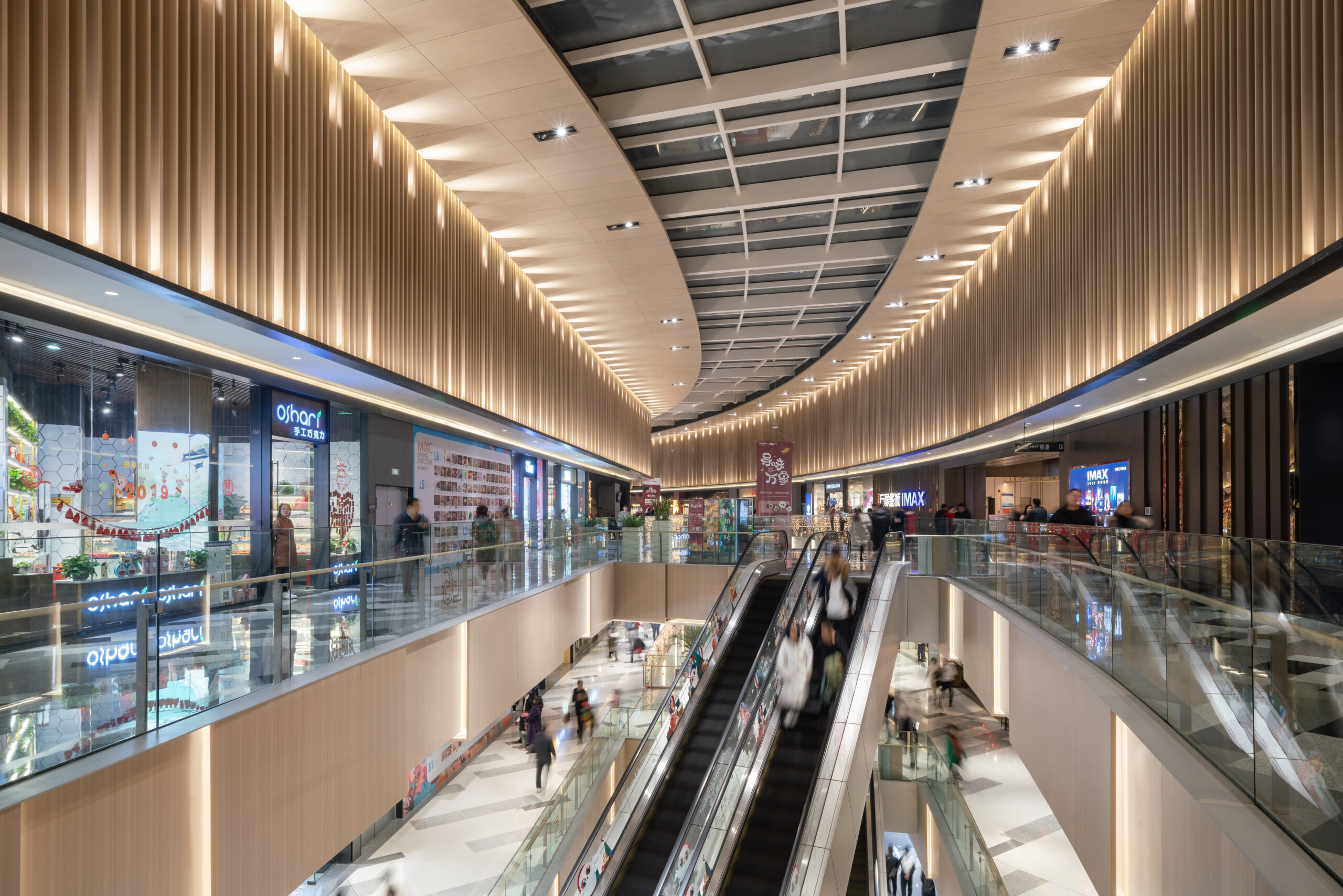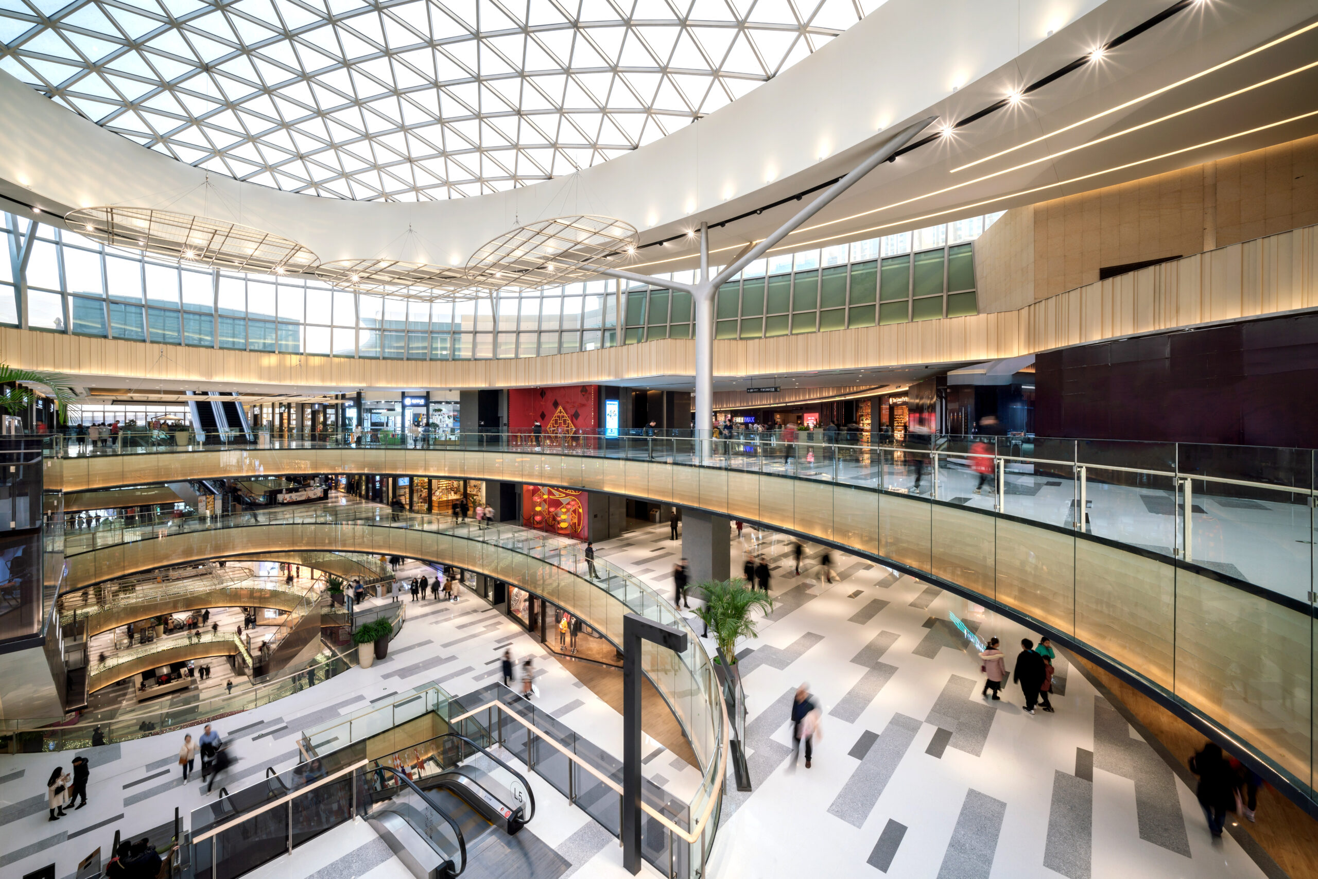 山西省太原市の長風文化ビジネス区の中央文化島に隣接する大型商業施設。文化島には博物館、劇場、科学技術ホールなどの文化施設が象徴的に配置され、その流れの中に本物件は位置する。また歴史的な街区と開発エリアの境界に位置することも施設の方向性を決める要因となった。この場にふさわしい風格のあるデザインが求められた。