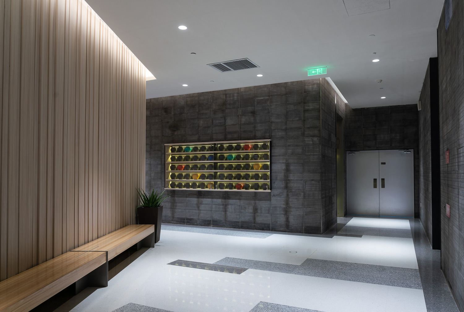 大きく三つのエリアに分かれる内部空間を文化的要素、芸術的感性を感じられる、それぞれのデザインでつなぎ一貫性を持たせた。素材の持つ表情に加え陰影や光を効果的に、かつ簡潔に表現することを意識した。