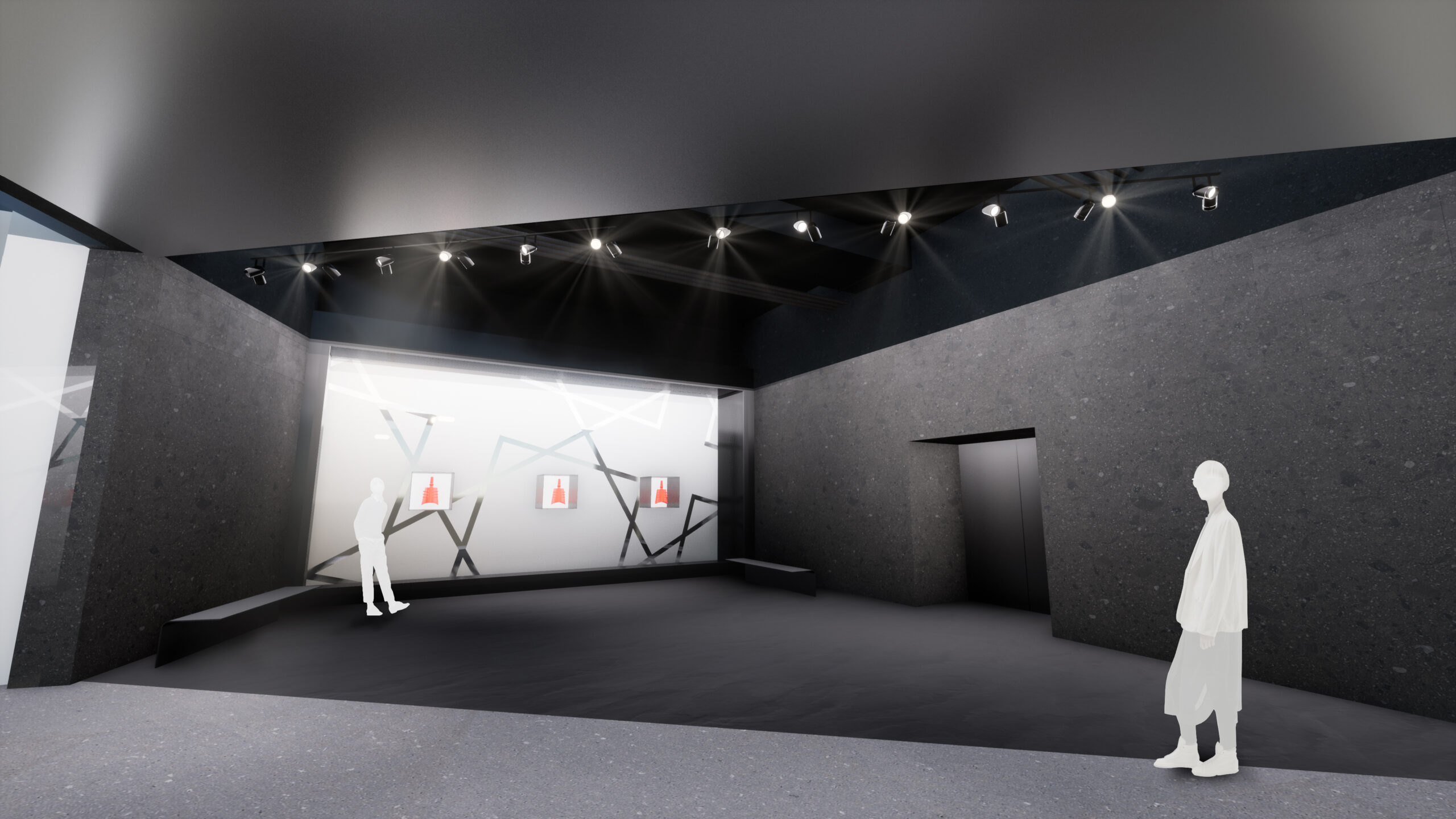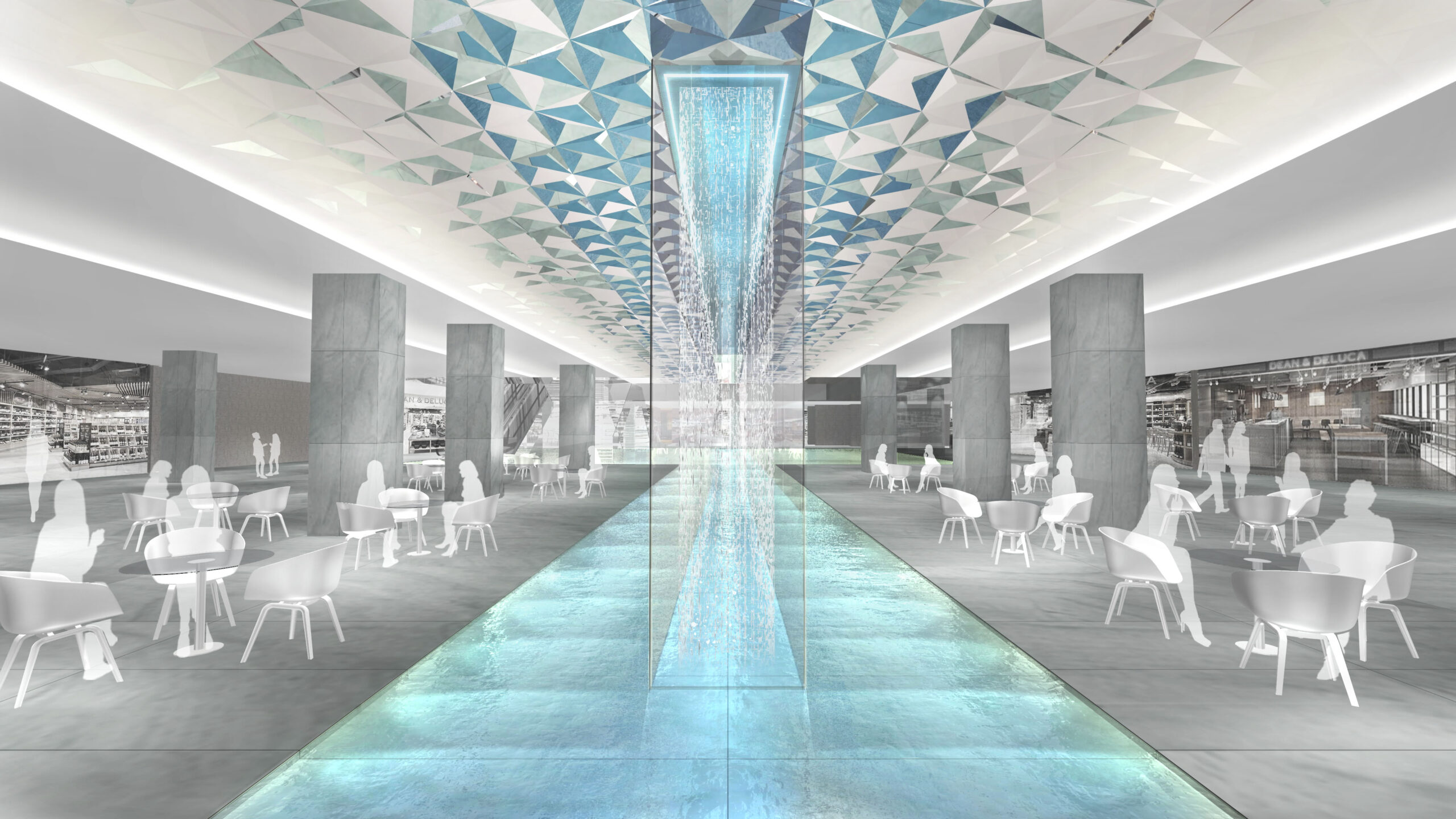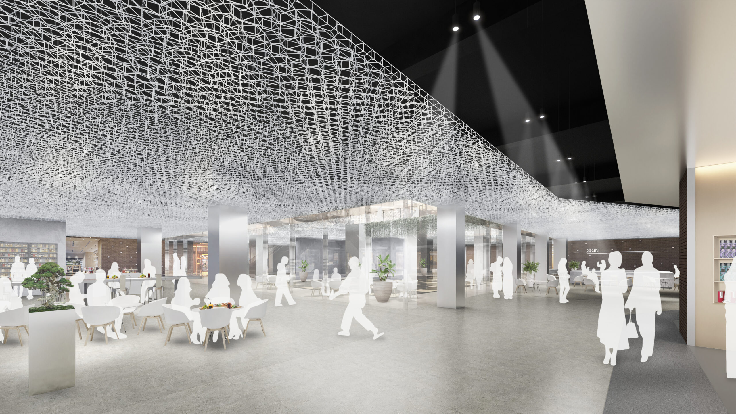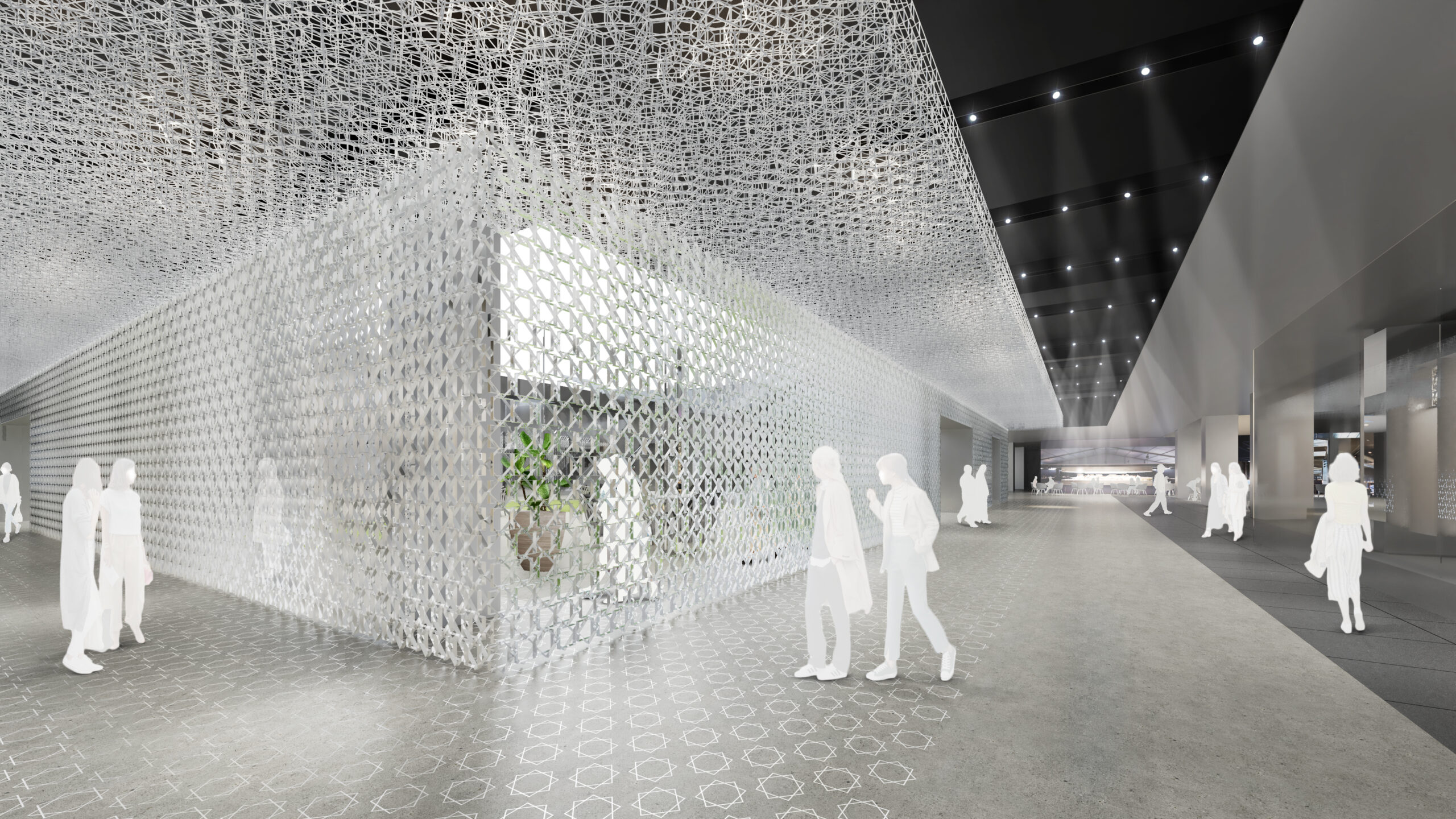 何段階かのデザインプレゼンテーションを経て、よりコンセプチュアルなデザインを追求していった。最終案はまるでインスタレーションアートの中にいるような空間となっている。