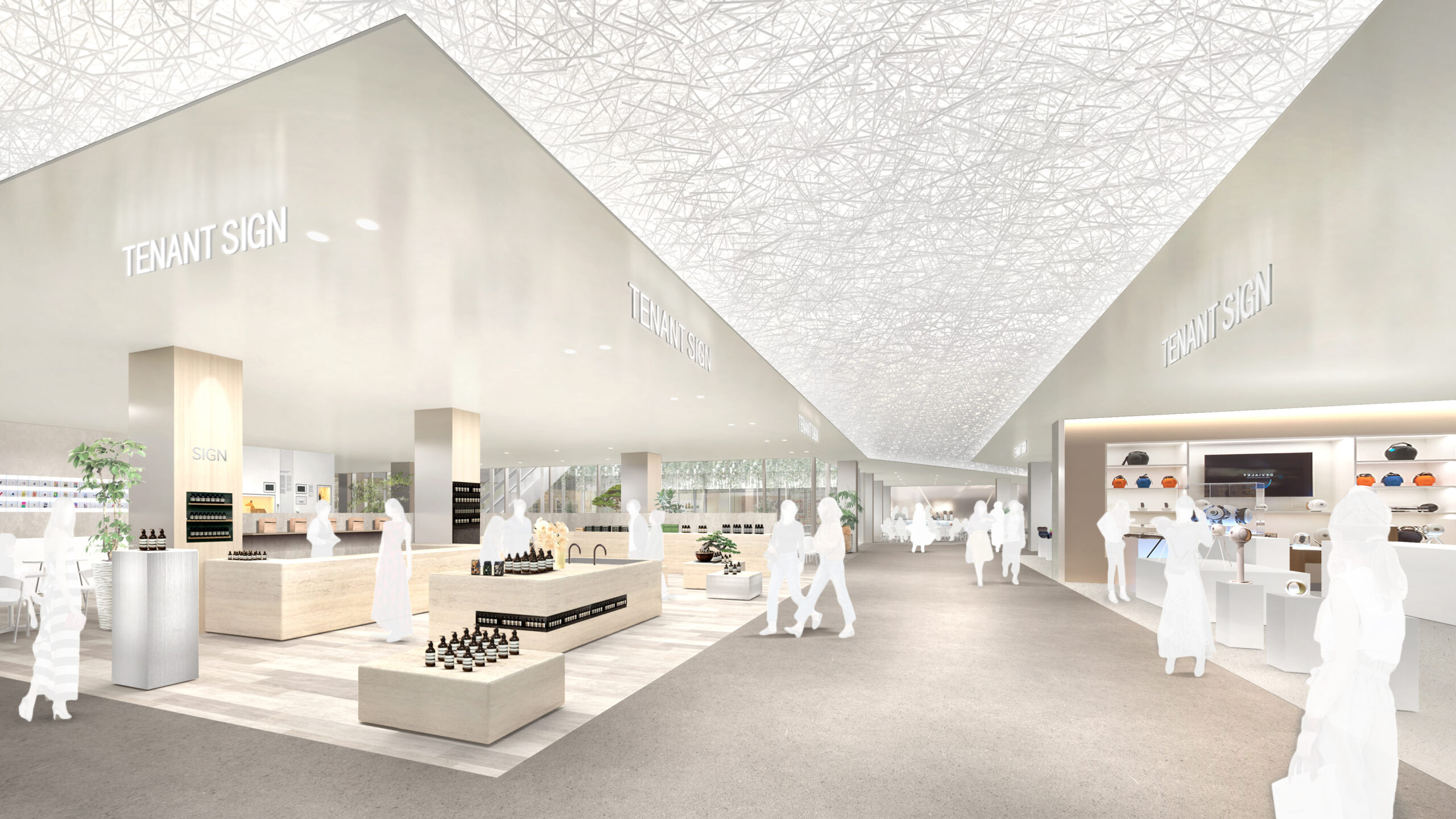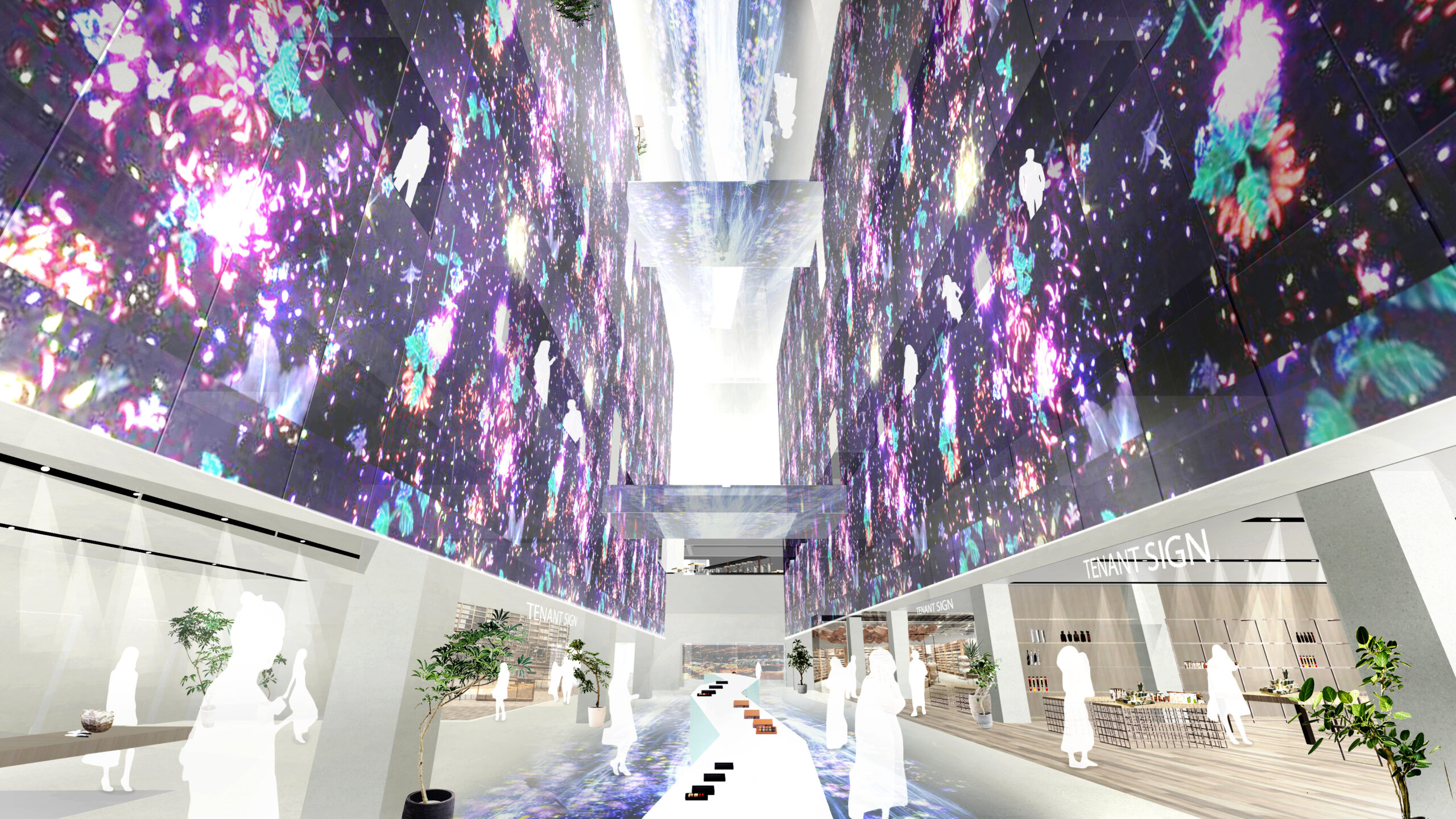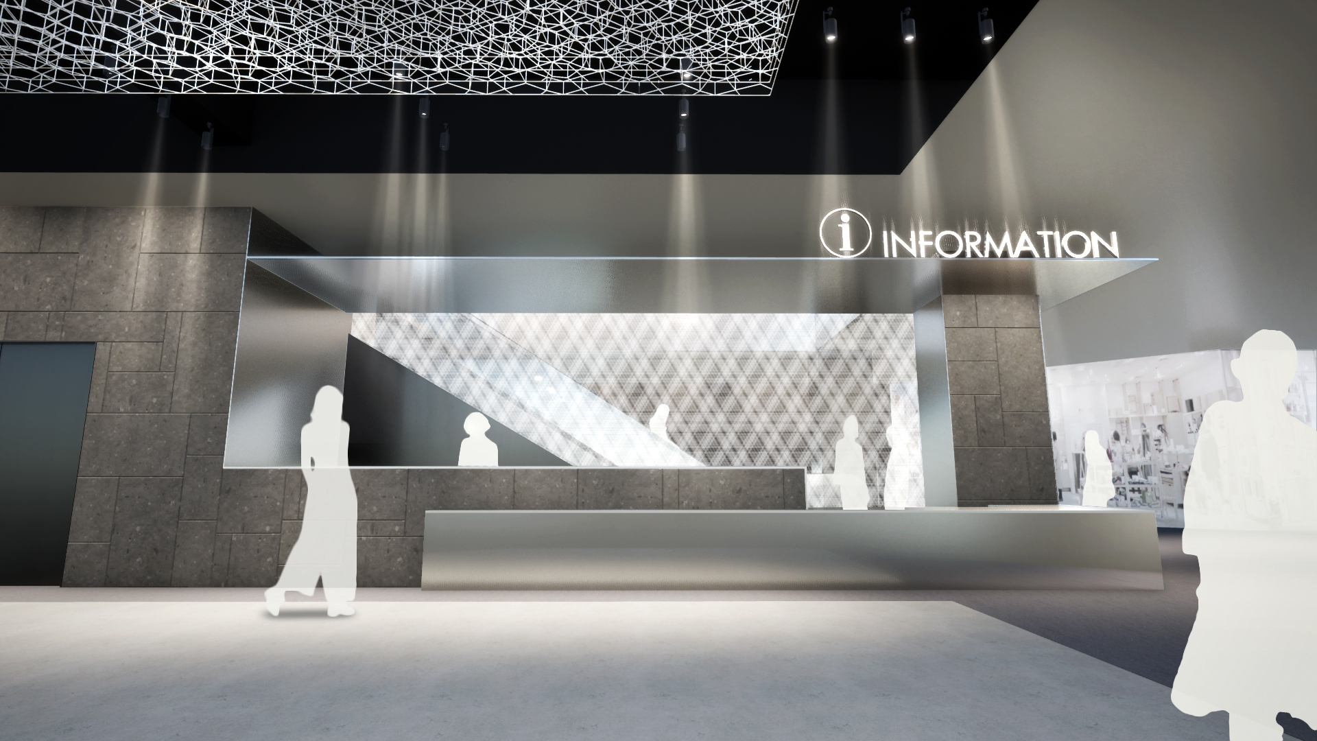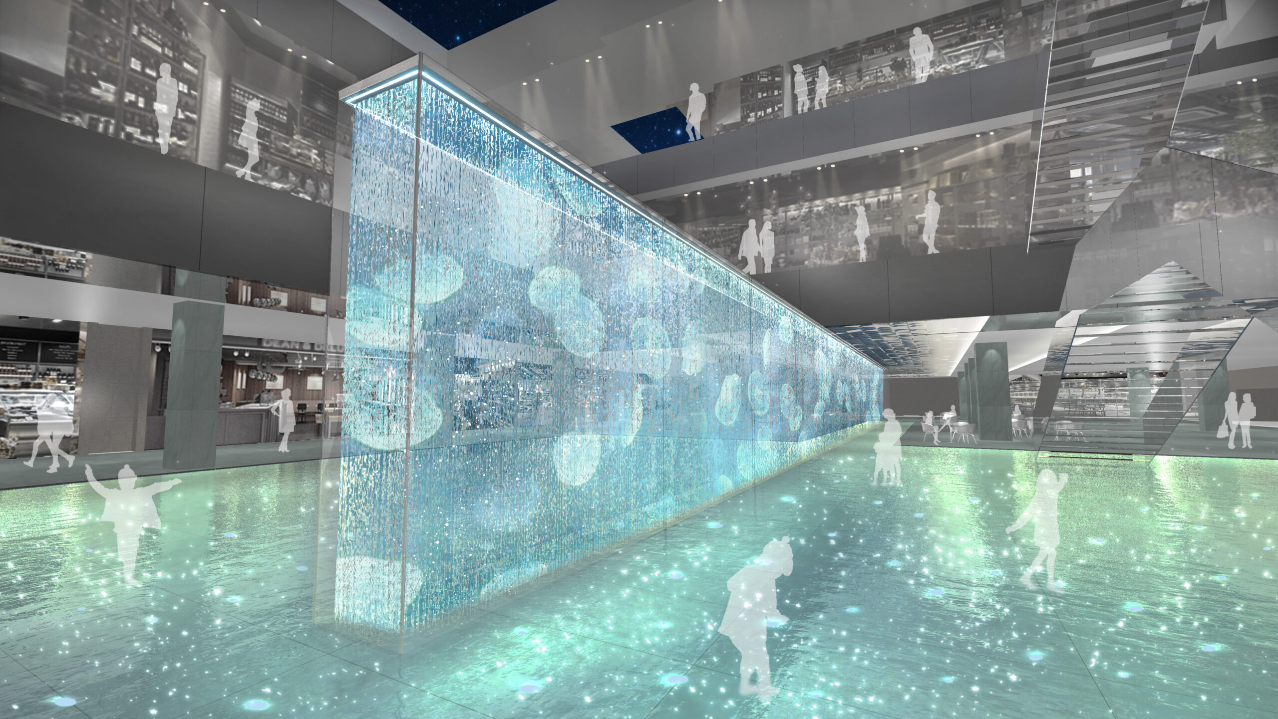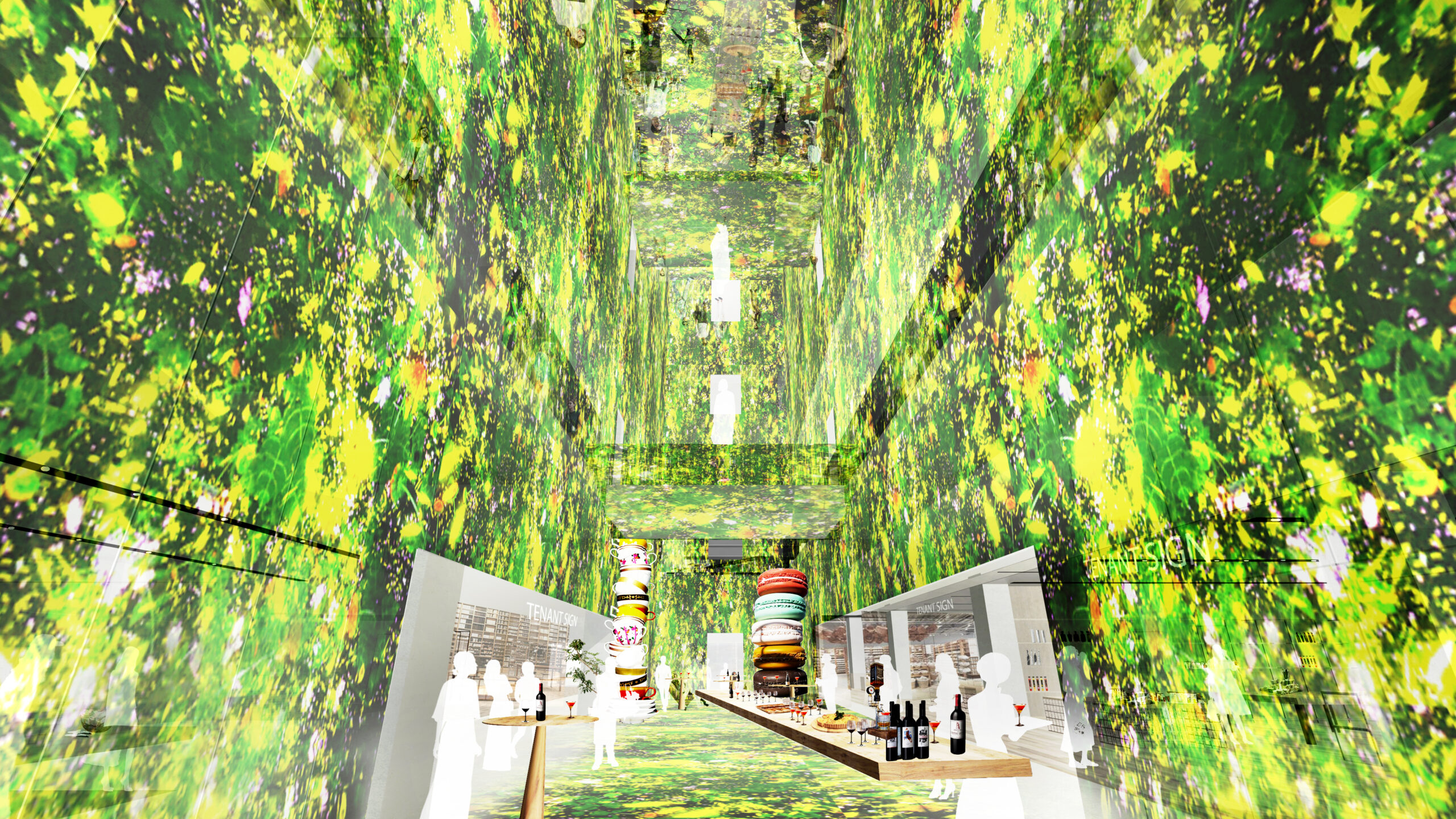 何段階かのデザインプレゼンテーションを経て、よりコンセプチュアルなデザインを追求していった。最終案はまるでインスタレーションアートの中にいるような空間となっている。