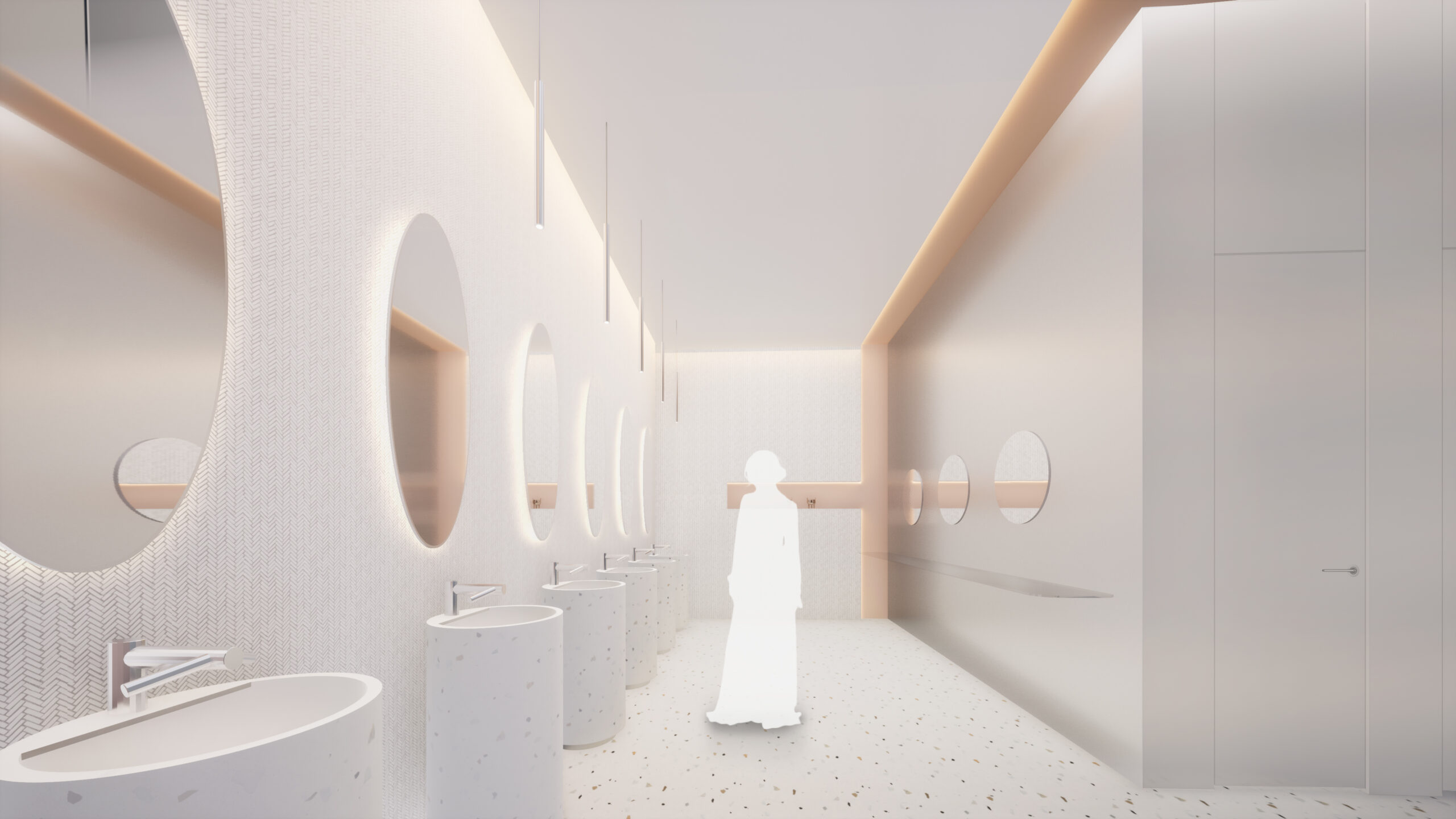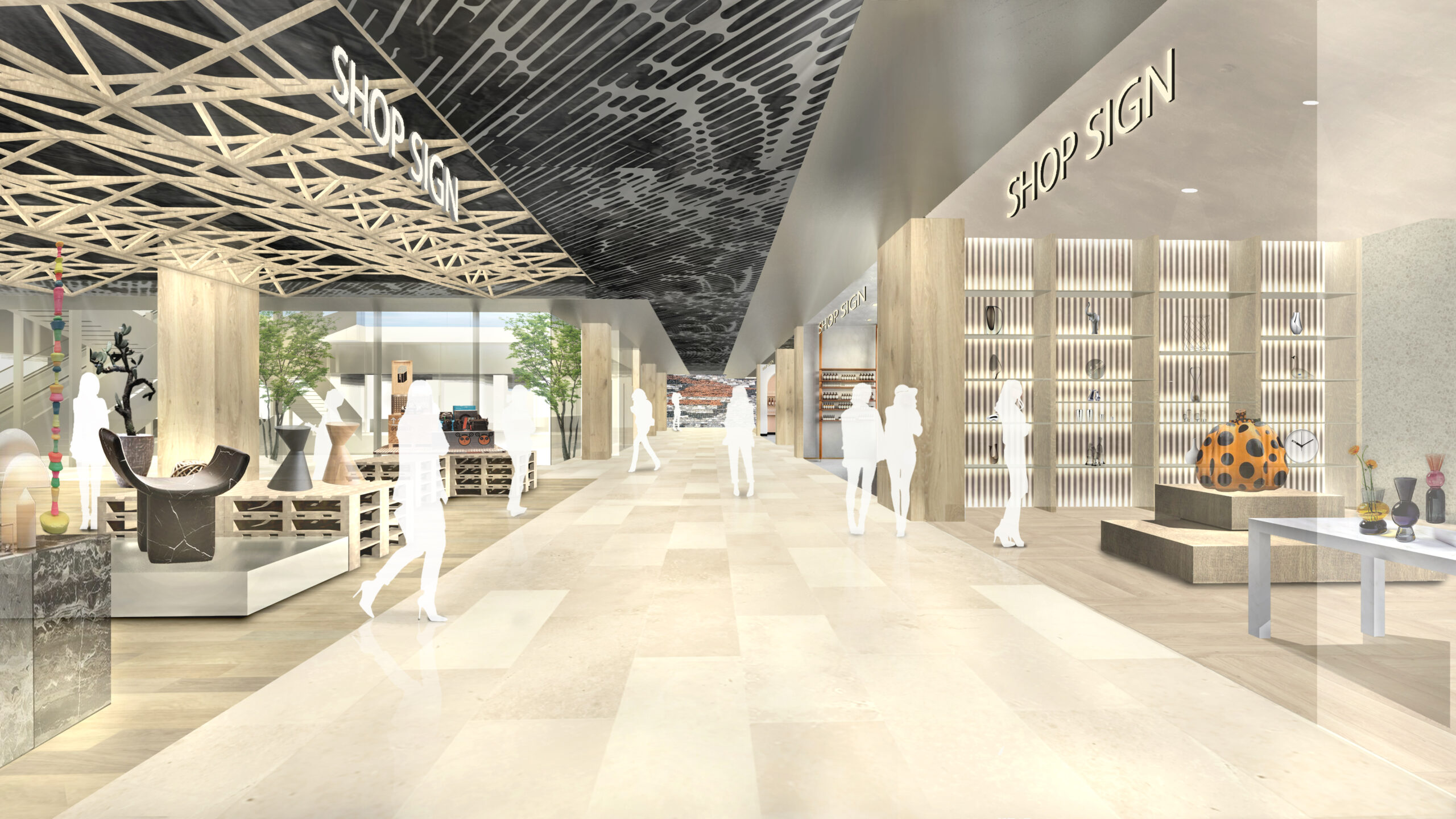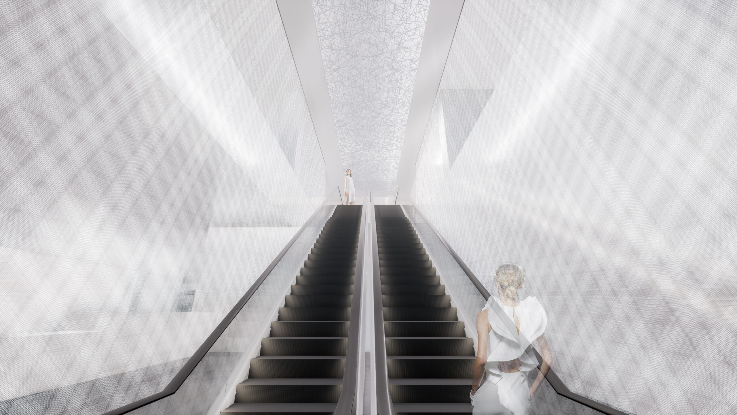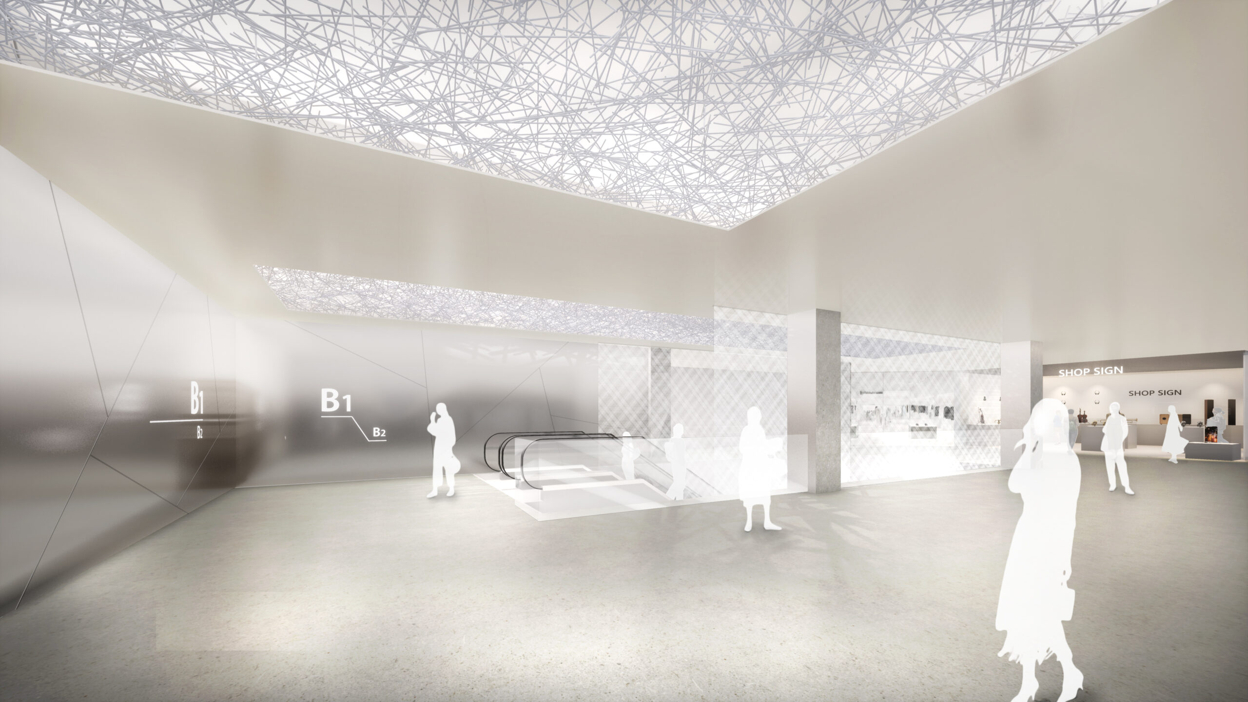 何段階かのデザインプレゼンテーションを経て、よりコンセプチュアルなデザインを追求していった。最終案はまるでインスタレーションアートの中にいるような空間となっている。