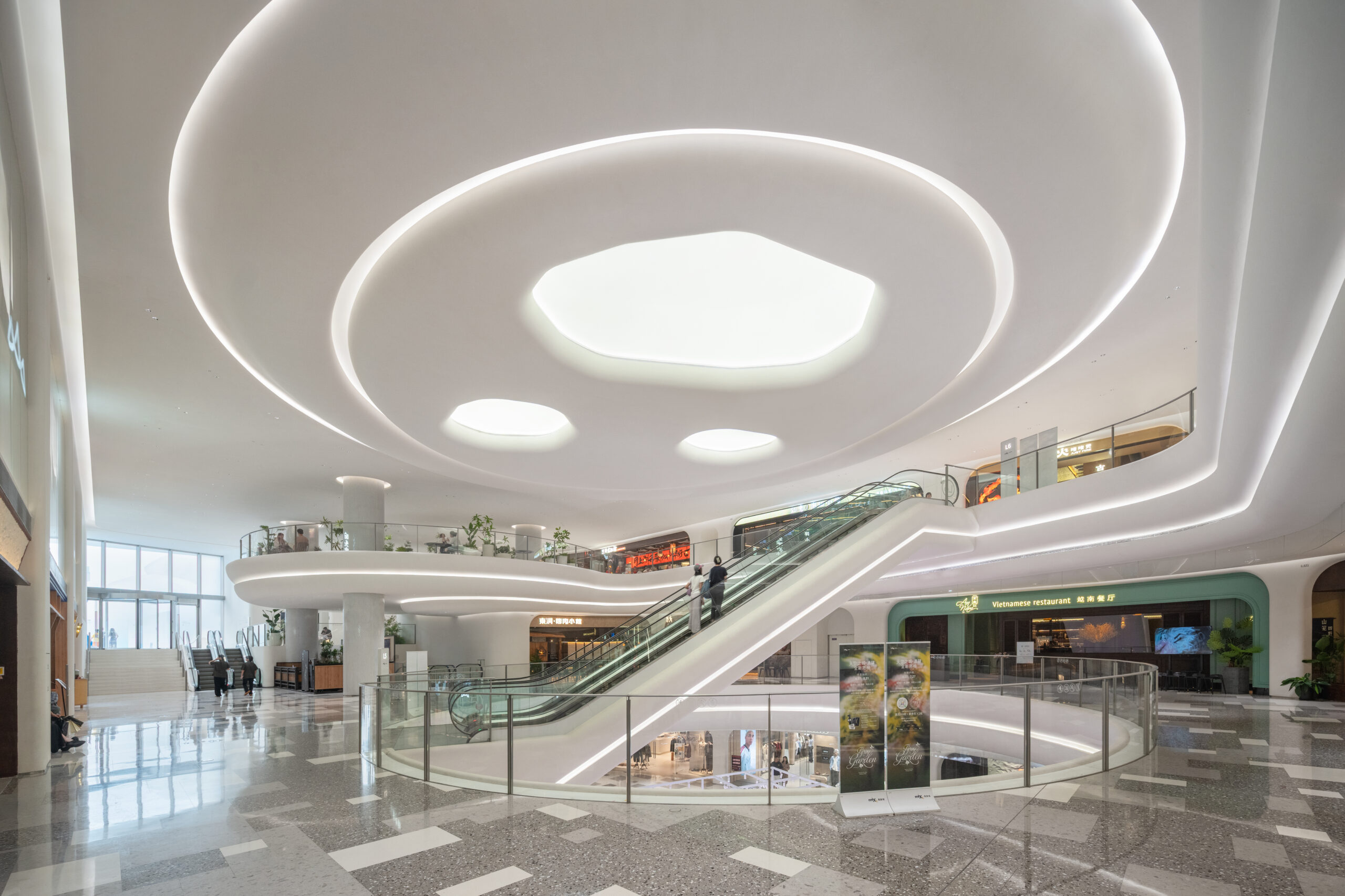 此外,入驻的店铺也以概念性与个性化的空间构成呈现,为来访者带来前所未有的体验。这里将成为兼具象征性与独创性的存在,塑造出整个商业体全新的核心空间。